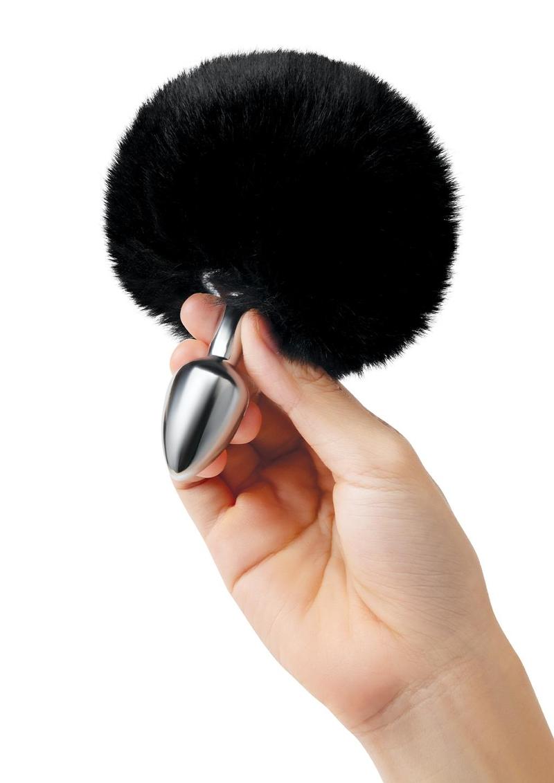 3fluffy Bunny Metal Plug W/ Black Tail - Black