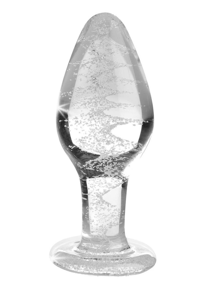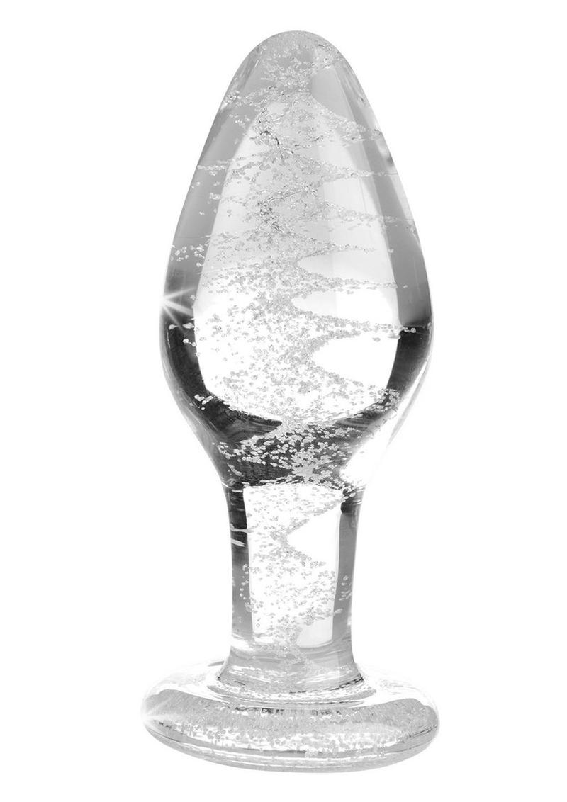 Booty Sparks Glow In The Dark Glass Anal Plug - Clear/Glow In The Dark - Medium