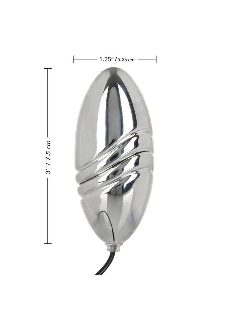 Turbo powered oversized vibrating bulletMulti-speedEZ grip controller with slide controlABS with PU Cote (black) ABS with silver plating (silver) ABS (controller)3 AA batteries3x 1.25/ 7.5 cm x 3.25 cm (bullet)