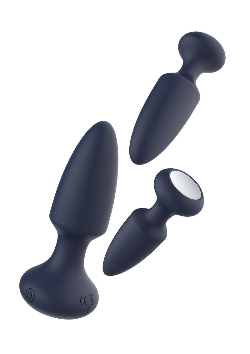 This Premium Vibrating Anal Plug Kit is your perfect tool kit for a journey to cosmic euphoria! The Mars plugs have 7 vibration rhythms and 3 speeds that can be easily operated with a single button. Simply cycle through the vibrations to choose one. The Startroopers kit is perfect for beginners because of the different sizes that allow anal training. Advanced anal players will love the torpedo shape and the slim neck. With their soft smooth silicone and their water resistance they`re a joy to use and easy to clean. They`re safe for the body and phthalate free. A magnetic USB cable is included for recharging, making them ready for another 90 minutes of red hot pleasure.