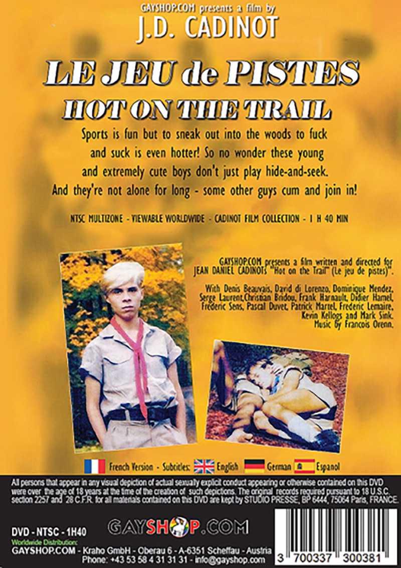 Le Jeu de Pistes, also known as Scouts 2, follows two teams of French boy scouts as they race each other to reach an agreed destination. The thirteen youths in this classic Cadinot film engage in all kinds of sexual antics along the way. Exhilarated by the sounds and smells of the beautiful countryside, sensuality is on the rampage, and these guys can't wait to share their own big swollen treasures with their buddies and a few lucky locals, including a hunter with a big gun, a fisherman and his long pole, plus two farmhands with very heavy loads! A must for fans of shorts, white briefs, and teenagers in scout uniforms. Originally released in 1984, Le Jeu De Pistes was known as Hot On The Trail in the USA.