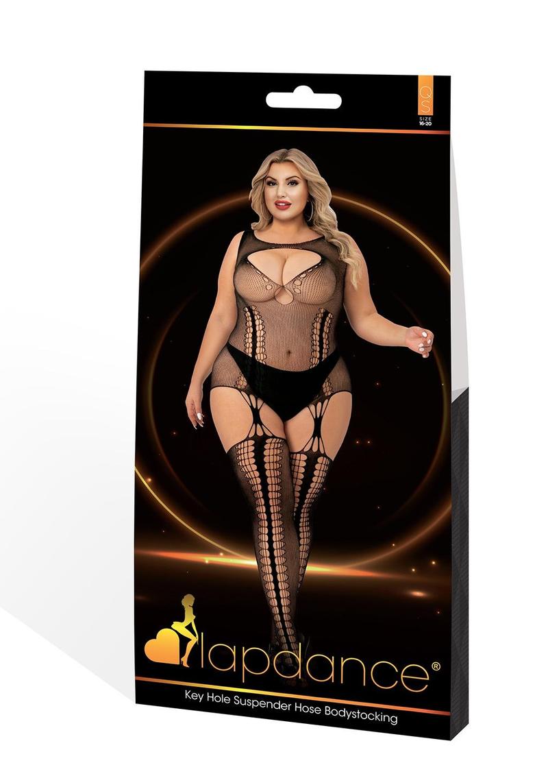 The Lapdance Lingerie keyhole suspender hose bodystocking is a daring one-piece designed to captivate and entice. Made...