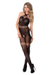 Leg Avenue Sheer Teardrop Net Detail Twist Halter Bodystocking - Black - One Size
