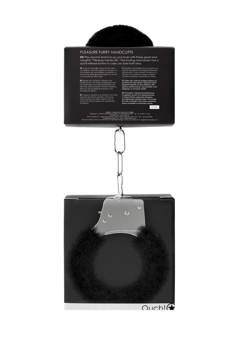 Ouch! Pleasure Furry Handcuffs - Black/Metal