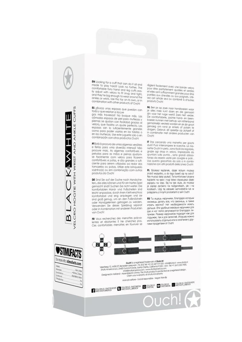 Looking for a cuff that can do it all and made to play hard? Look no further. The comfortable furry hand and leg cuffs easily adjust with velcro to fit snug and tight, and they're big enough to wear around the ankles or wrists. Use this toy on its own, or in combination with other products of Ouch!