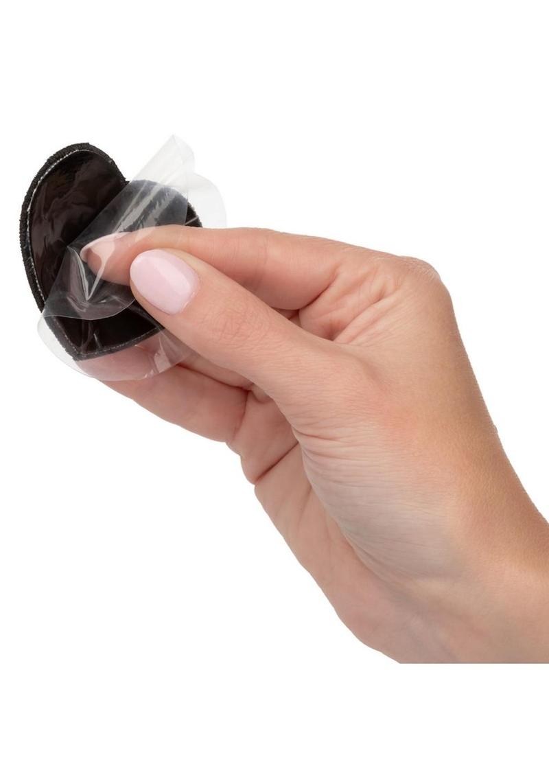 2 form-fitting pasties with gem accents included. Easy peel & stick application. Reusable.