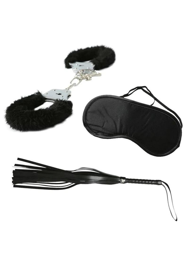 1 pair black furry metal nickel free handcuffs. 1 black satin blindfold. 1 16 inch (40 cm)...