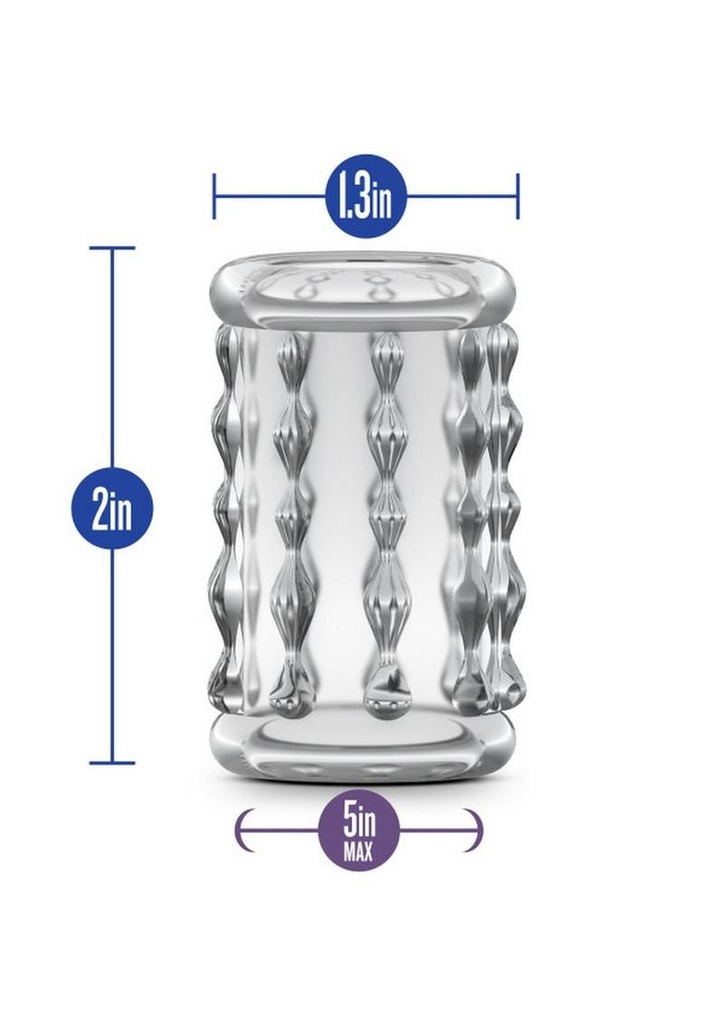 This stretchy enhancement sleeve is a simple way to add a new level of pleasure and sensation to your penis, favorite dildo or vibrator. Just slide the sleeve over your shaft. Stack them for even more pleasure. Buy more so you can mix and match and stack them to create a unique erotic experience every time. Easy to use, and stays in place. Measures 2" Length x 1.4" Width. Comfortably stretches up to 3" Wide. Maximum stretch to 5" Width. Lab tested body safe. Silicone, water based, hybrid lube compatible.