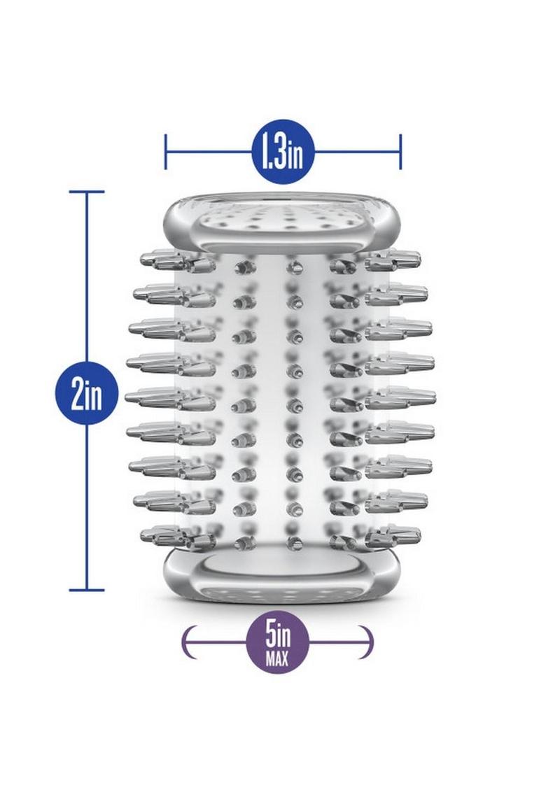 This stretchy enhancement sleeve is a simple way to add a new level of pleasure and sensation to your penis, favorite dildo or vibrator. Just slide the sleeve over your shaft. Stack them for even more pleasure. Buy more so you can mix and match and stack them to create a unique erotic experience every time. Easy to use, and stays in place. Measures 2" Length x 1.4" Width. Comfortably stretches up to 3" Wide. Maximum stretch to 5" Width. Lab tested body safe. Silicone, water based, hybrid lube compatible.