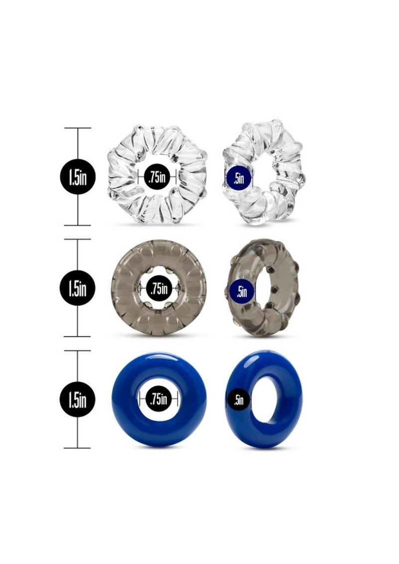 Play hard, play comfortable! The Stay Hard Triple Stretch 3 Pack Cock Rings gives you three rings...